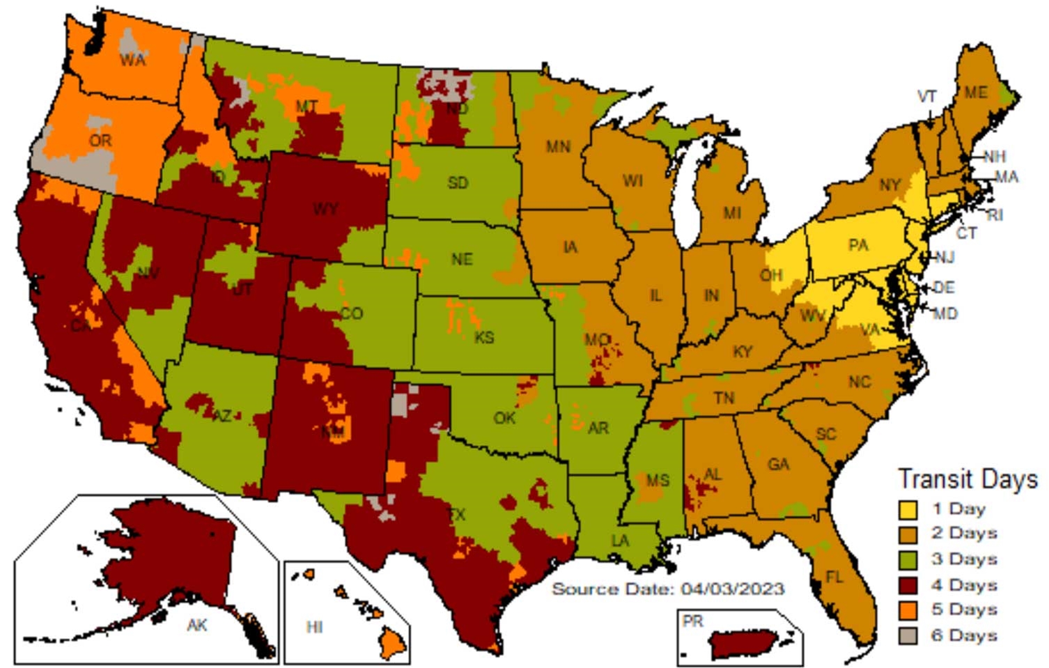 US Postal Service: (NOT GUARANTEED TIMES IN TRANSIT)